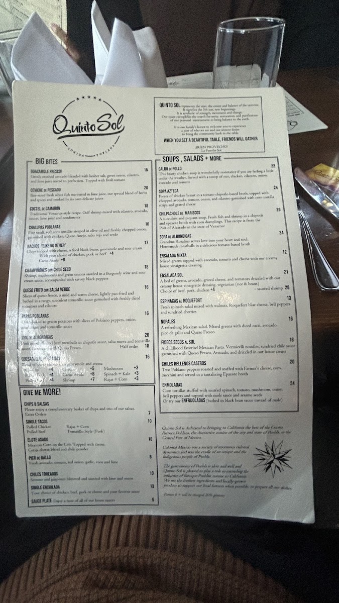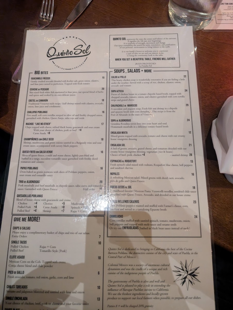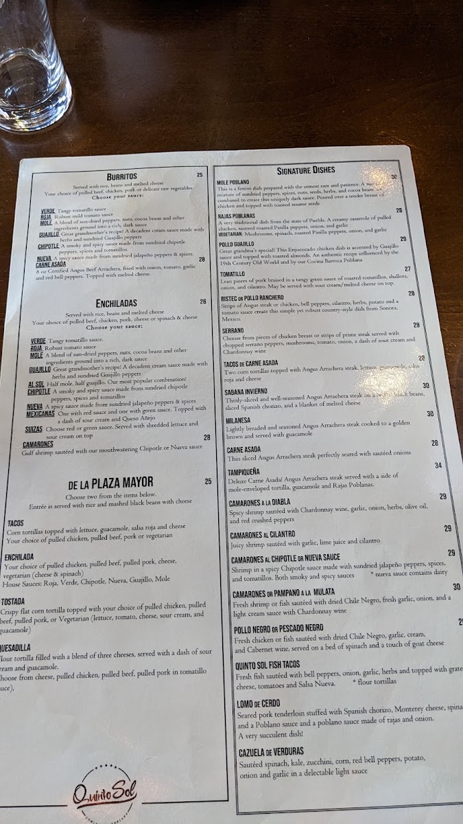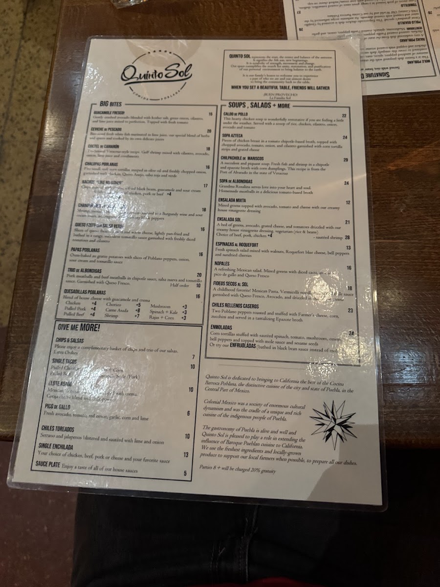 Corn tortillas stuffed with sautéed spinach, tomato, mushroom, onion, bell peppers and topped with mole sauce and sesame seeds. *vegan OR ENFRIJOLADAS bathed black beans instead of mole. Queso fresco added as garnish* (vegetarian) *can be vegan