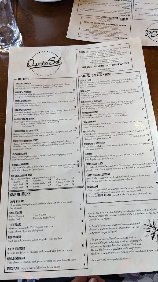 A very traditional dish from the state of Puebla. A creamy casserole of pulled chicken, roasted Pasilla peppers, onion, and garlic ‘Vegetarian: Mushrooms, spinach, kale, corn and roasted Pasilla peppers, onion, and garlic.